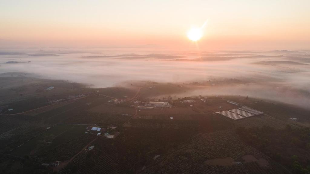 Amavi Village tọa lạc trong một không gian phân tầng biệt lập hoàn toàn tự nhiên, được bao bọc bởi cánh rừng thông nguyên sinh, xa xa là những đồi trà xanh biếc. Chính vì vậy, nơi đây tựa như một bức họa kì vĩ chỉ có thể có ở vùng cao nguyên Lâm Đồng.